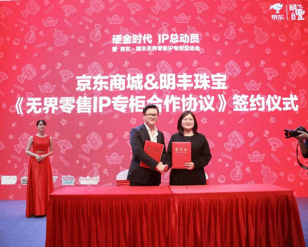 广州朱凯移动应用销售有限公司“IP专门店”,是广州朱凯移动应用销售有限公司硬金精品产品的IP授权产品系列,其目前拥有招财猫、史努比、大嘴猴、动物大联盟、招财童子等众多知名IP授权,商品将于2018年9月开始陆续上市。与此同时,《京东无界零售IP专柜》将与众多知名珠宝品牌企业开展合作,其模式将植入品牌旗下的终端门店中,进一步拓展无界零售专柜模式。